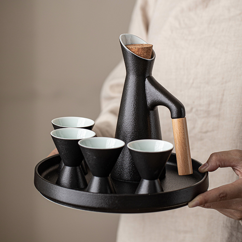 黒陶和風秋辰温酒器 家庭用温酒壺 酒壺 陶器 白酒カップ スピリッツカップ 古風デザイン