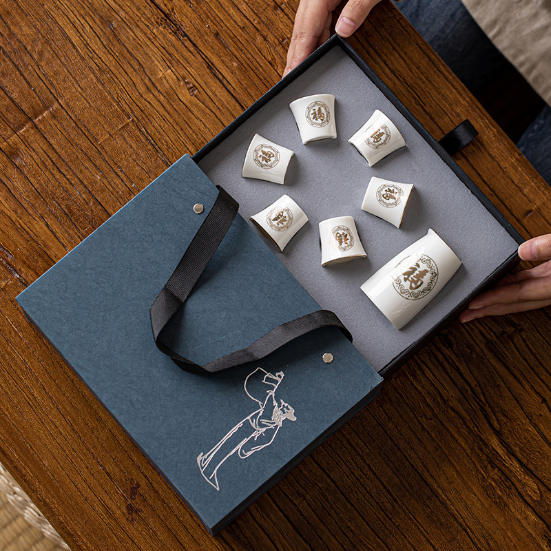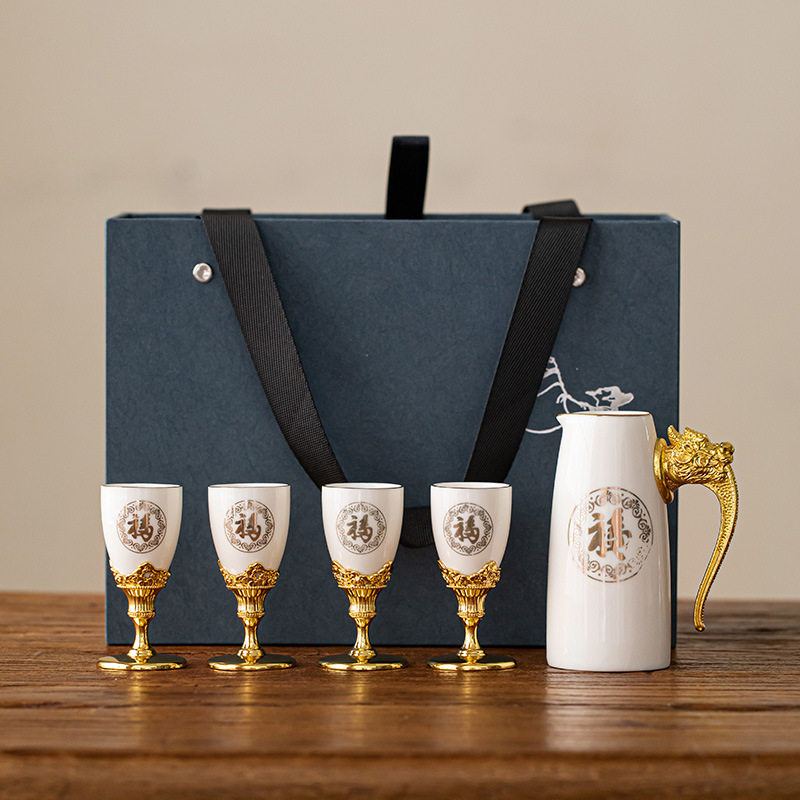 陶磁器白杯分酒器高級礼箱セット家庭用高足杯創意中国式酒具杯小杯