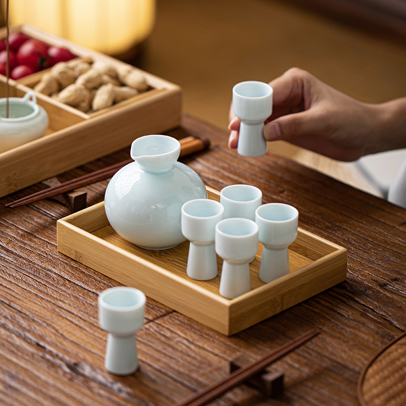 創作陶器酒器セット、酒差し、白ワイングラス、スピリッツグラス、一口グラス、酒器、酒壺、酒杯セット、青磁酒器
