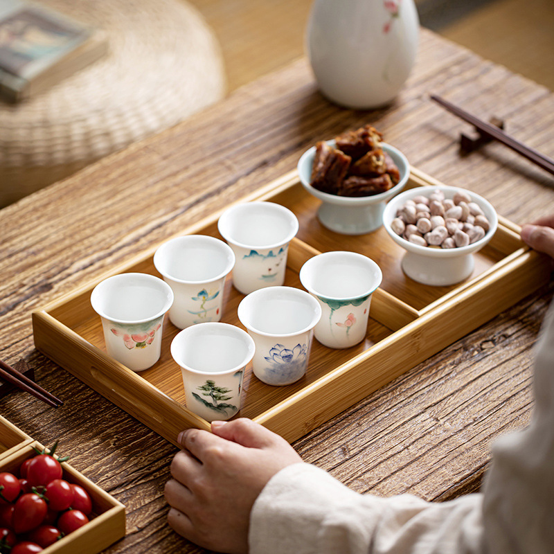 レトロな陶磁器の中国式の模造の白い杯の強い杯の旧式の家庭用の手描きの3つの小さい杯の杯の杯の1杯
