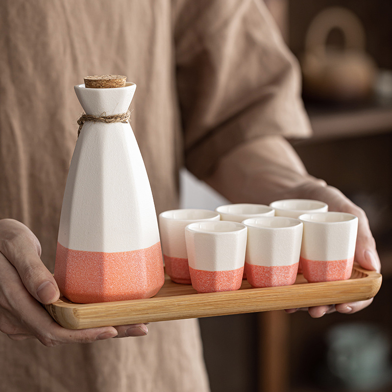 日本式白酒分酒器小酒壺創意家庭用黄杯烈一口杯居酒屋陶磁器酒具セット