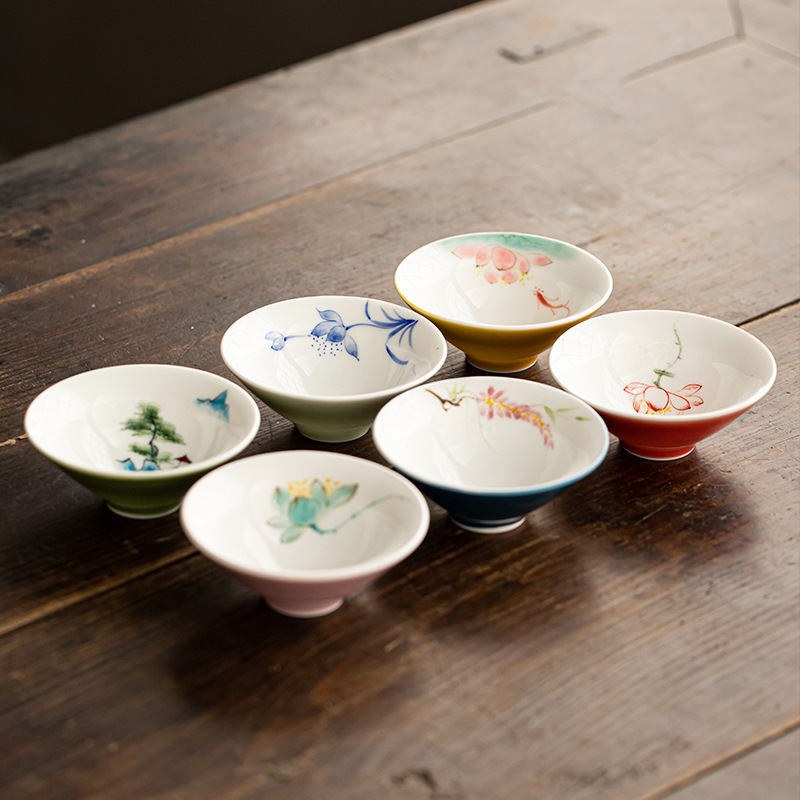 創意陶磁器の手描きのオープングラス白酒の強い酒の黄色の杯の家庭用のワインの杯の杯の杯の杯の杯の杯の1杯の杯