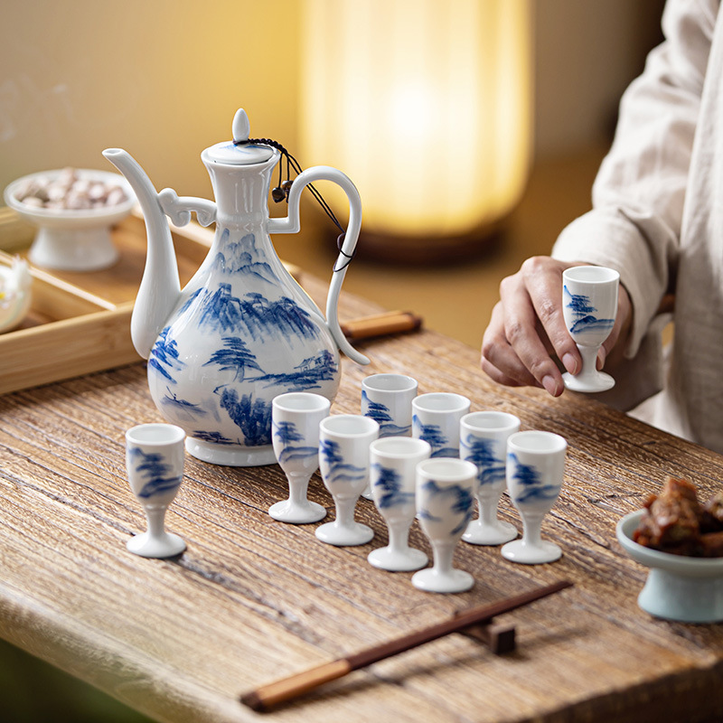 中国式陶磁器酒器セット分酒器分酒壺レトロ家庭用白酒焼酎黄酒高足杯小酒杯