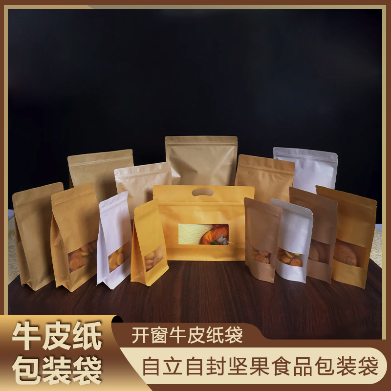 カジュアル小型包装食品セルフシール自立包装袋スナックナッツメロン種子クラフト紙袋食品グレード