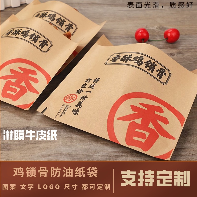 ショートニング鶏鎖骨紙袋鶏叉骨防油食品包装袋牛皮淋膜紙の出前包装はカスタマイズをサポートしている
