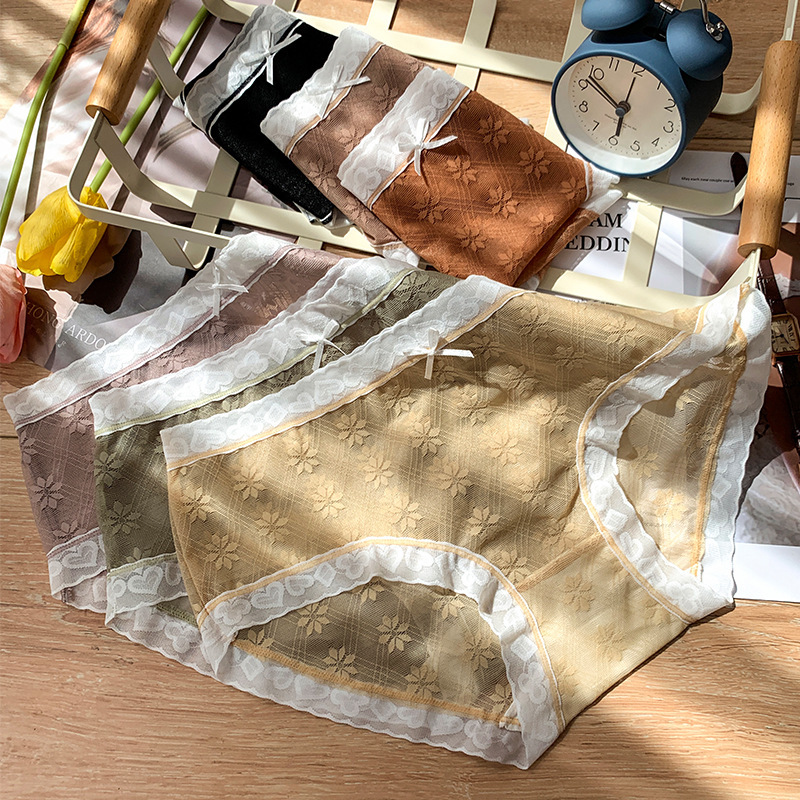 女性下着綿股レース網糸無痕氷糸性惑薄タイプセクシー中腰三角半ズボン頭