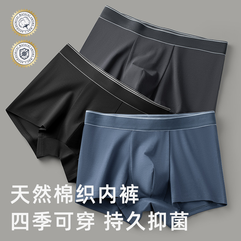 スポーツ通気性のある純綿ボクサーブリーフ、ルーズボーイズボトムス、無地の快適な伸縮性下着、メンズボクサーパンツ