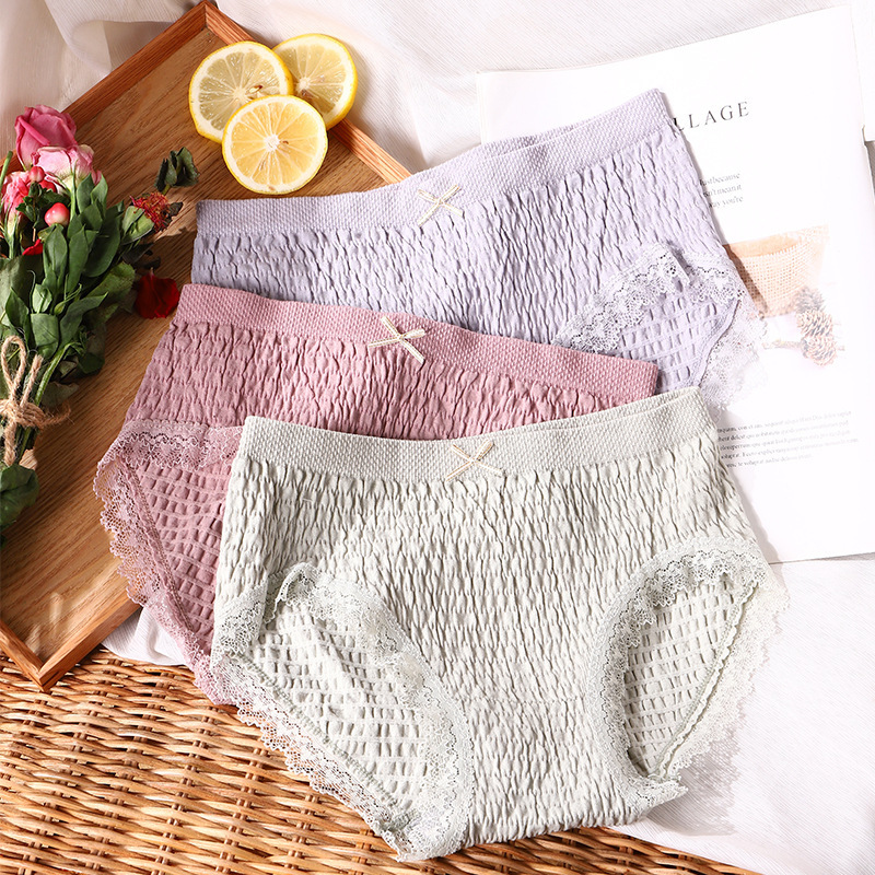 女性用セクシーなレースの下着、綿クロッチシームレスアイスシルク薄いミッドウエスト女の子用ブリーフ