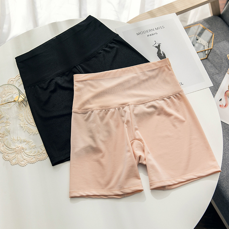 女性用ハイウエストおなか引き締めヒップアップ安全パンツ、露出防止夏用薄いアイスシルクシームレスおなか引き締め大きいサイズボトムショーツ