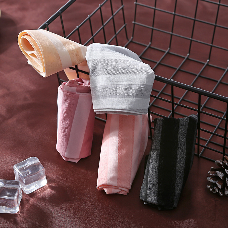 セクシーなシームレスな下着女性のアイスシルクストライプミッドウエスト透明春と夏の綿クロッチ女性のブリーフメーカー卸売