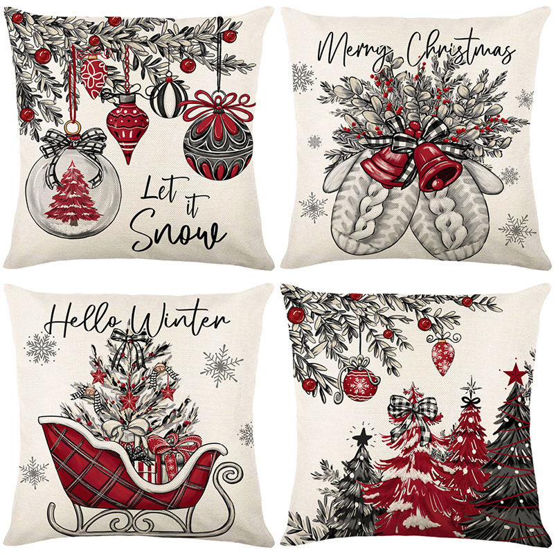 2024新型国境を越えたクリスマス装飾抱き枕カバー亜麻プリントソファー枕カバー家庭用クッションカバー卸売り