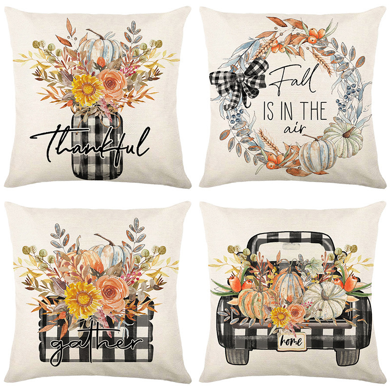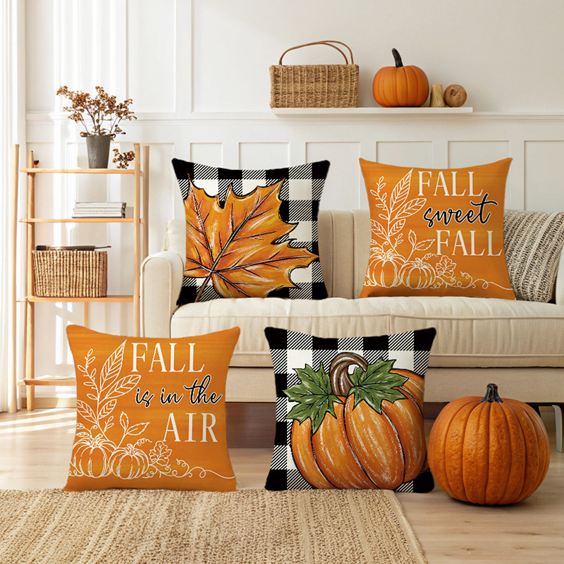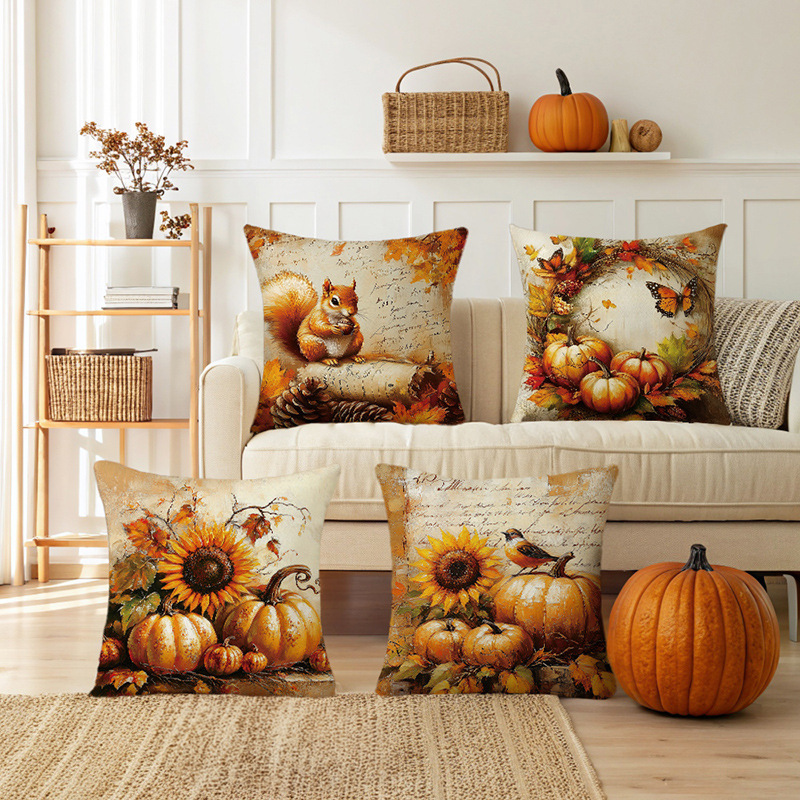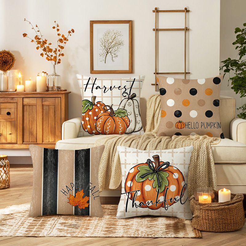 2025 新秋カボチャ枕カバーリネンプリントアマゾンホームソファ枕カバー寝室クッションカバー