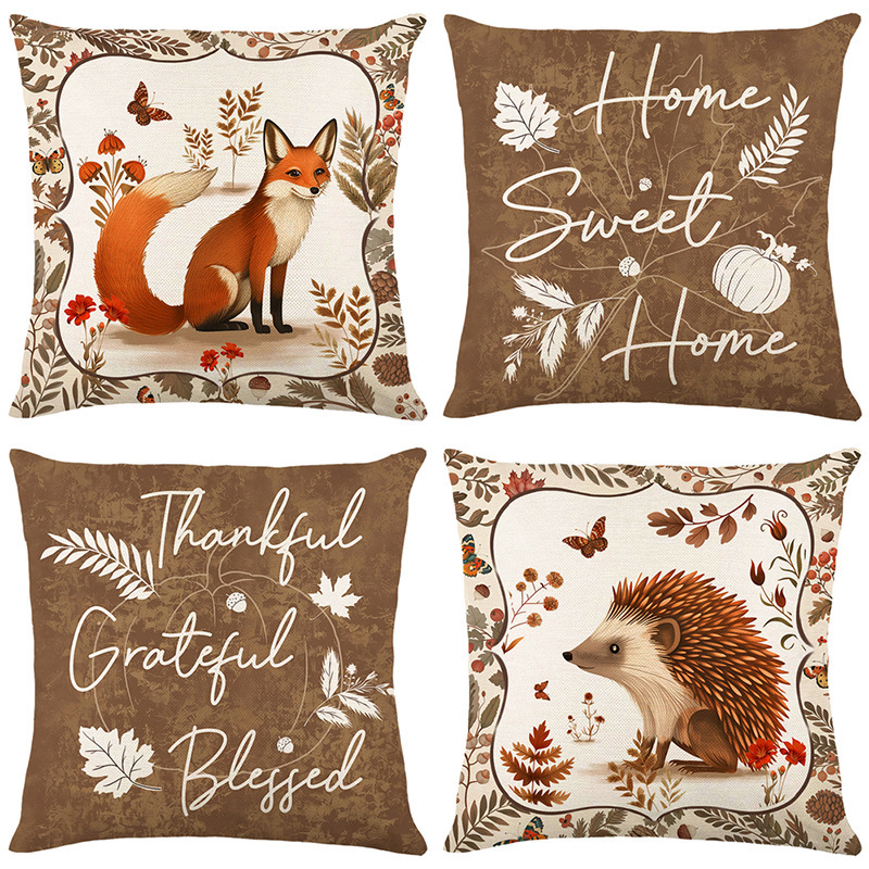 新しい感謝祭枕カバー動物リネンプリントクッションカバーリビングルームソファ装飾ホームアマゾンクロスボーダー