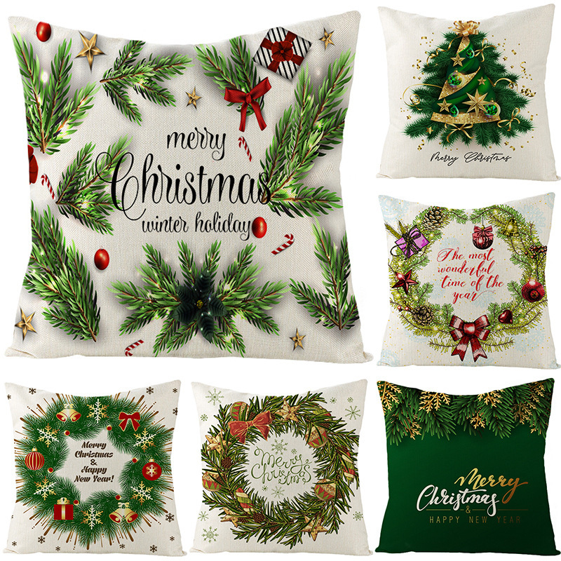 亜麻プリント抱き枕カバー2021クリスマス新作緑シリーズソファー枕カバーアマゾン家庭装飾