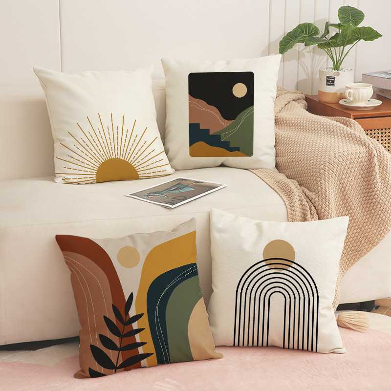 ボヘミアンスタイルプリント枕カバー屋内出窓装飾正方形幾何学クッションリネン抽象的なシンプルなソファ枕