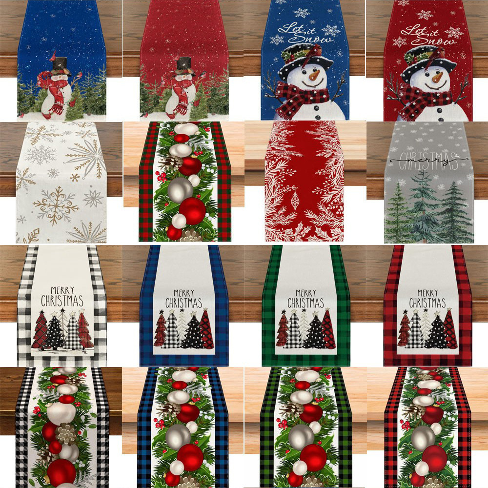 国境を越えたクリスマスのテーマプリントテーブル旗祝日の雰囲気装飾クリスマスツリー雪だるま模様テーブルクロス卸売り