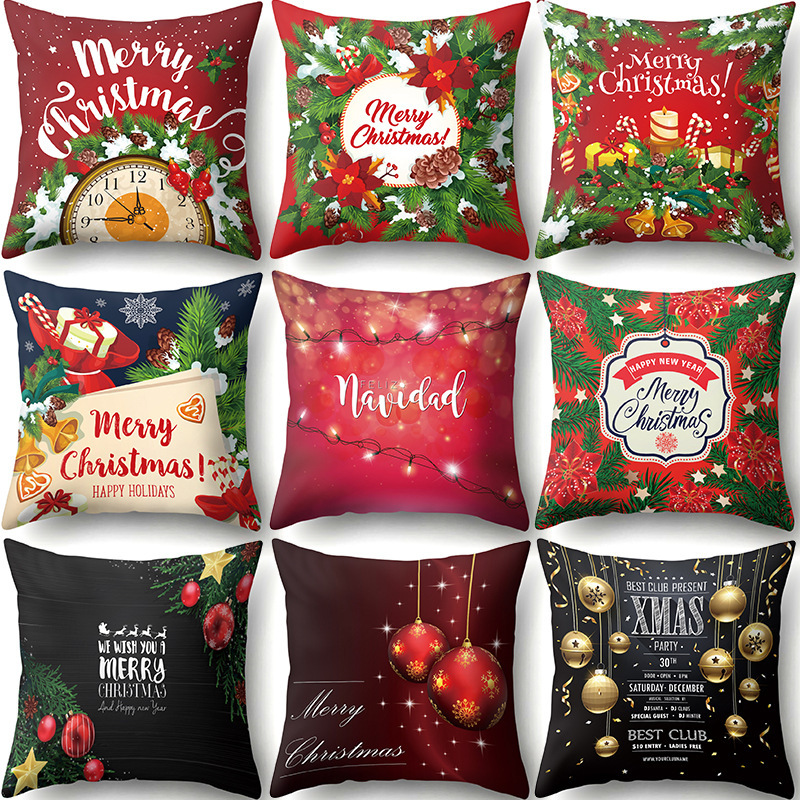 クロスボーダークリスマス枕カバーサンタリネンプリントホリデーホームデコレーションクッションカバー寝室クッションカバー