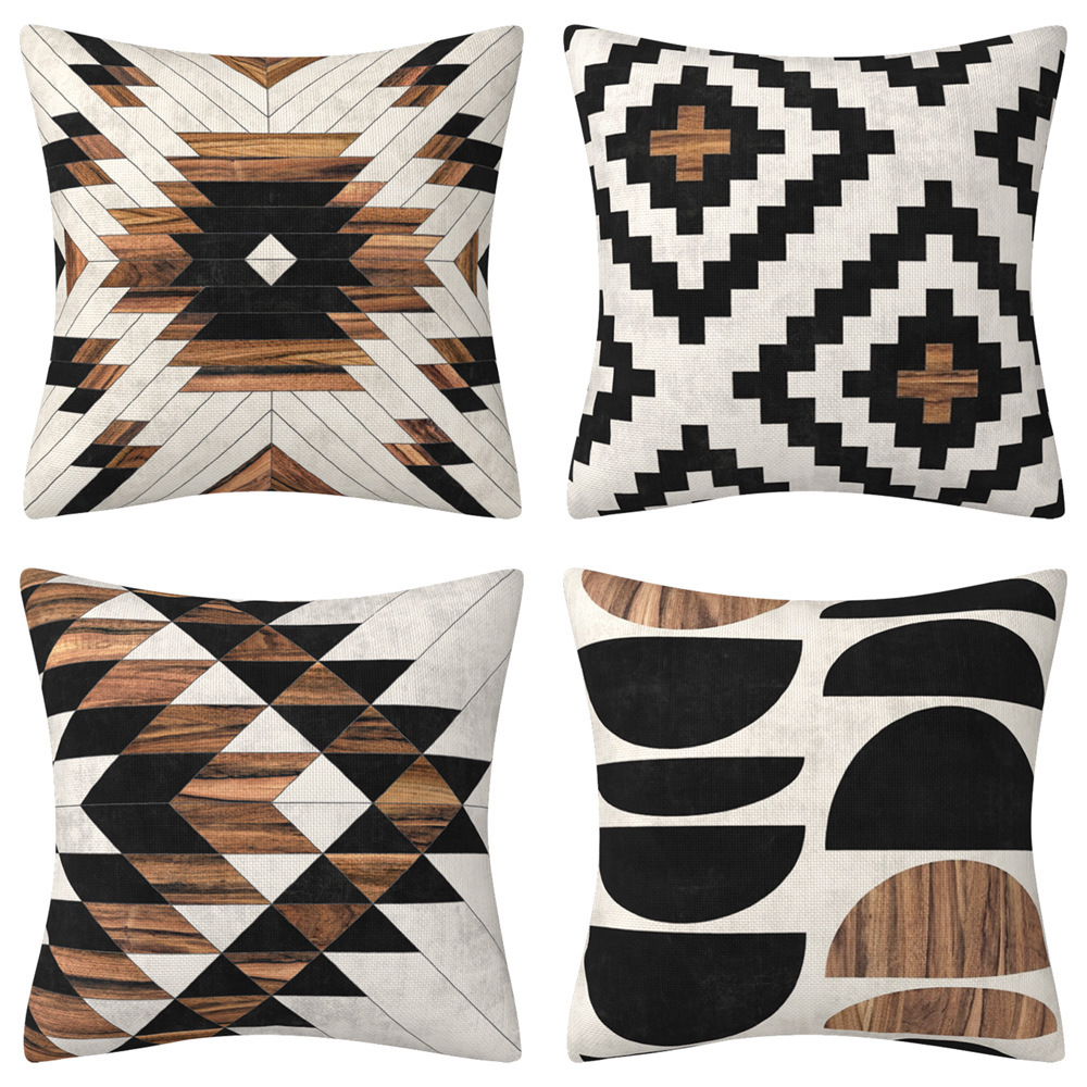 国境を越えた人気の幾何学的な抽象的な木のテクスチャ枕カバーモダンな家の装飾クッションソファクッションカバー屋外