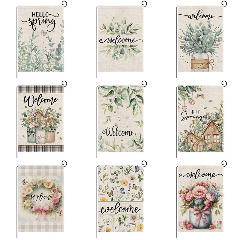 2025 新製品クロスボーダー植物と花のプリントシリーズガーデンフラッグリネン二層プリント屋外小さなフラグ中庭