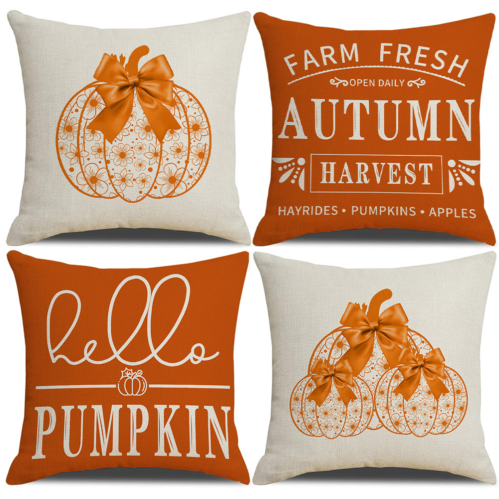 カボチャオレンジレターピローカバーアマゾン秋物語装飾ソファクッションカバー寝室のベッドサイドクッションカバー