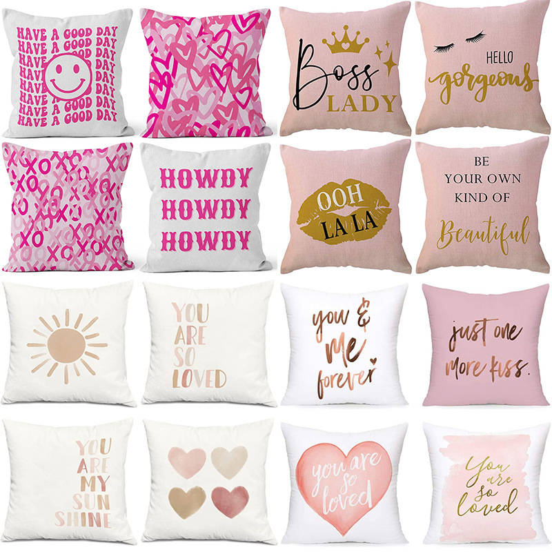 クロスボーダー新しいレターラブプリント枕カバーリネンピーチスキンソファリビングルームベッドルームクッションカバーアマゾン