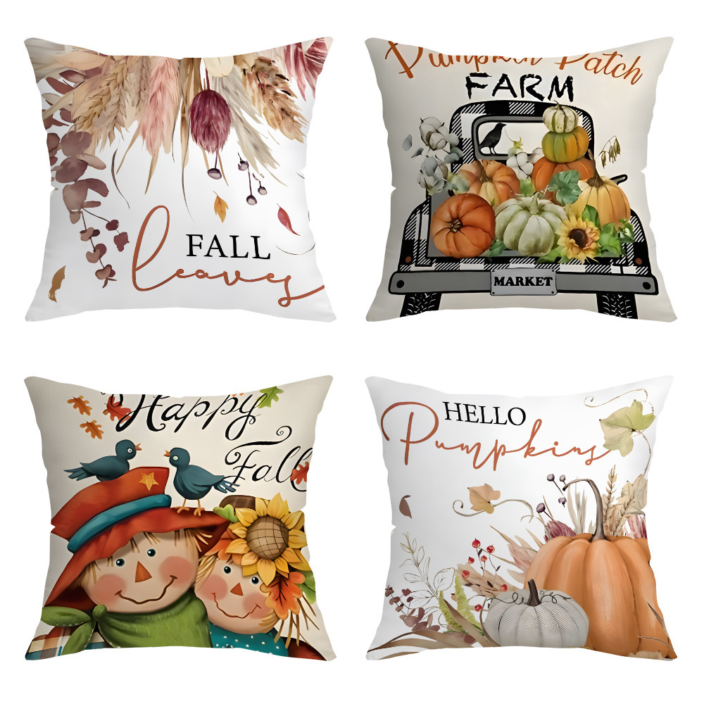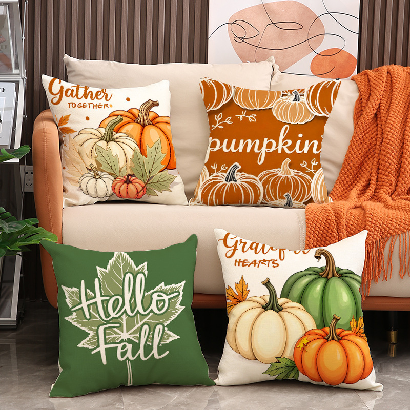 北欧クロスボーダークリエイティブ秋の収穫感謝祭カボチャクッション枕カバー片面プリントファームハウス正方形枕カバー