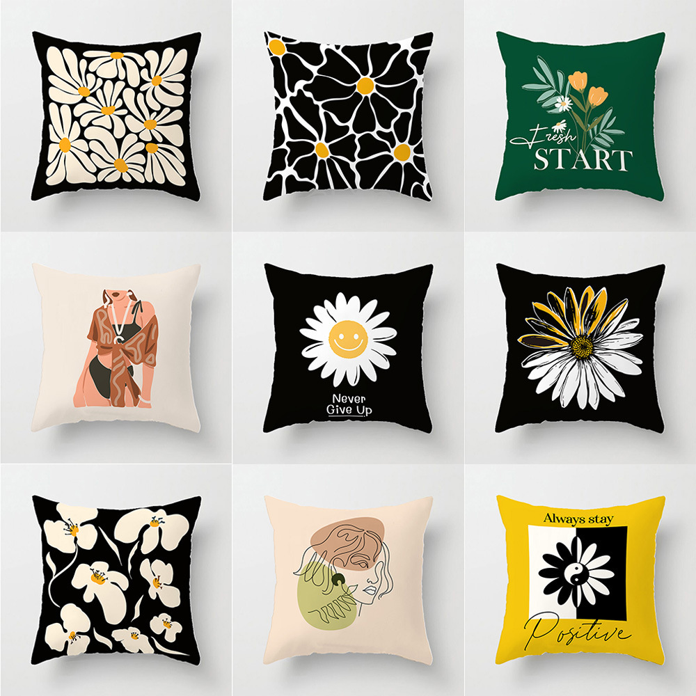 クロスボーダー Amazon 北欧抽象花枕カバー小さな新緑植物ライト高級ホーム睡眠枕クッションカバー