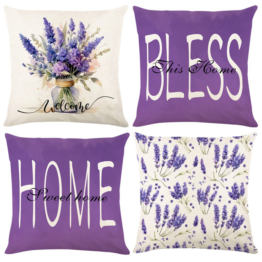 秋のレタープリント枕カバー植物花リネンクロスボーダーホームソファクッションカバー寝室のベッドサイド枕