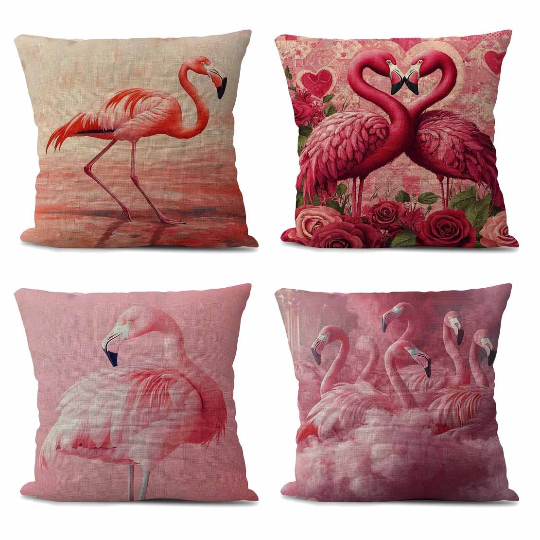 クロスボーダーフラミンゴリネン枕クッションリビングルームホームソファ枕カバー芯なし正方形大型枕