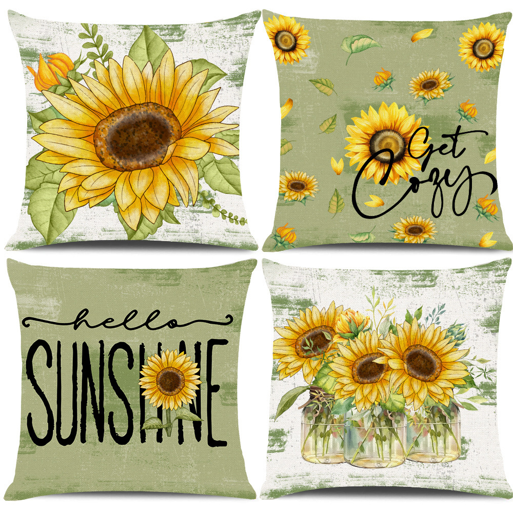 2025 アマゾン春夏ひまわり枕カバーモダンシンプルなリビングルームソファクッションカバー寝室の枕