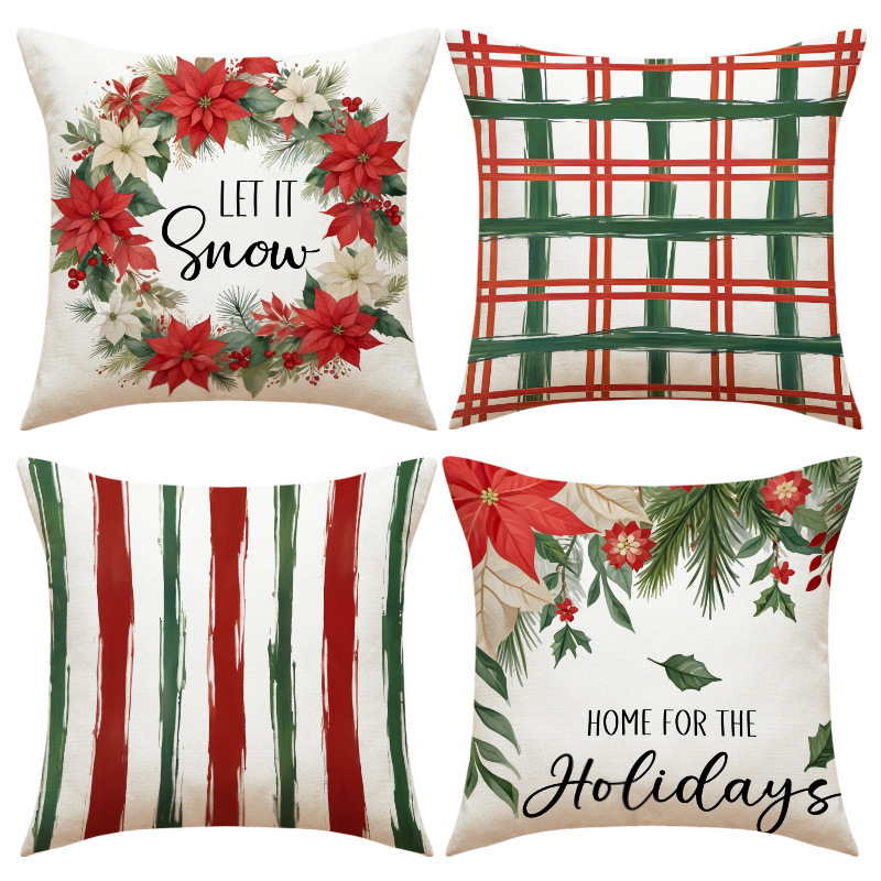 リネンクリスマスプリント枕カバーモダンシンプルホームデコレーションリビングルームソファクッションカバーアマゾンクッション