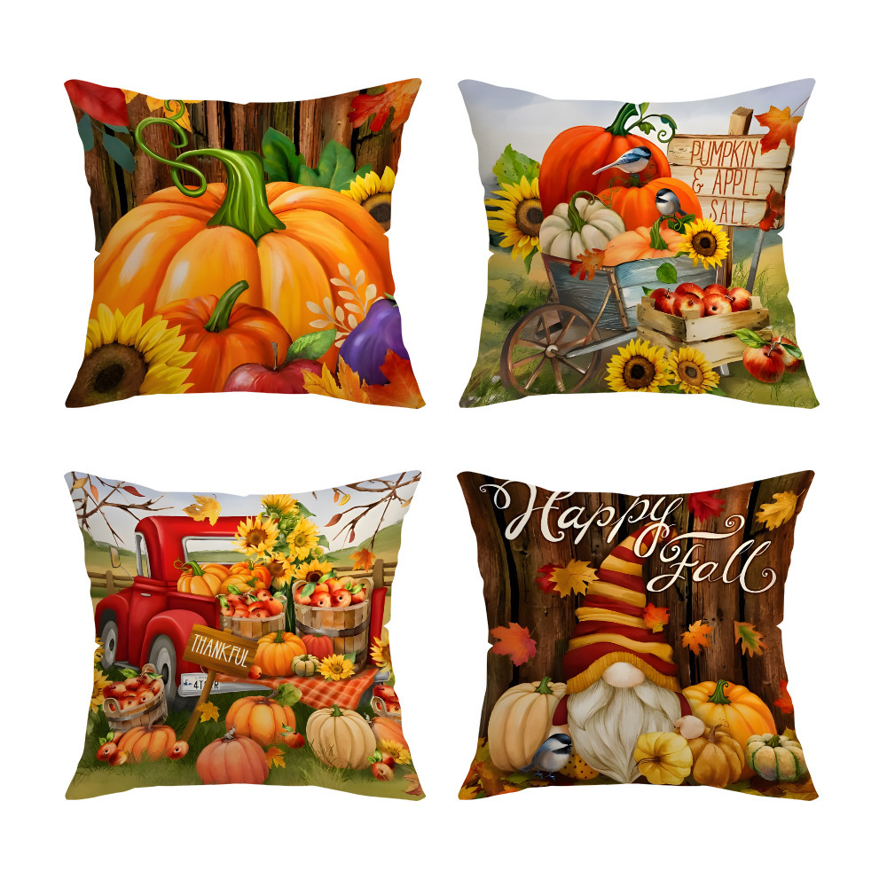 クロスボーダー新しい秋のドワーフカボチャクリエイティブクッション枕カバー感謝祭カエデの葉片面プリント枕カバー
