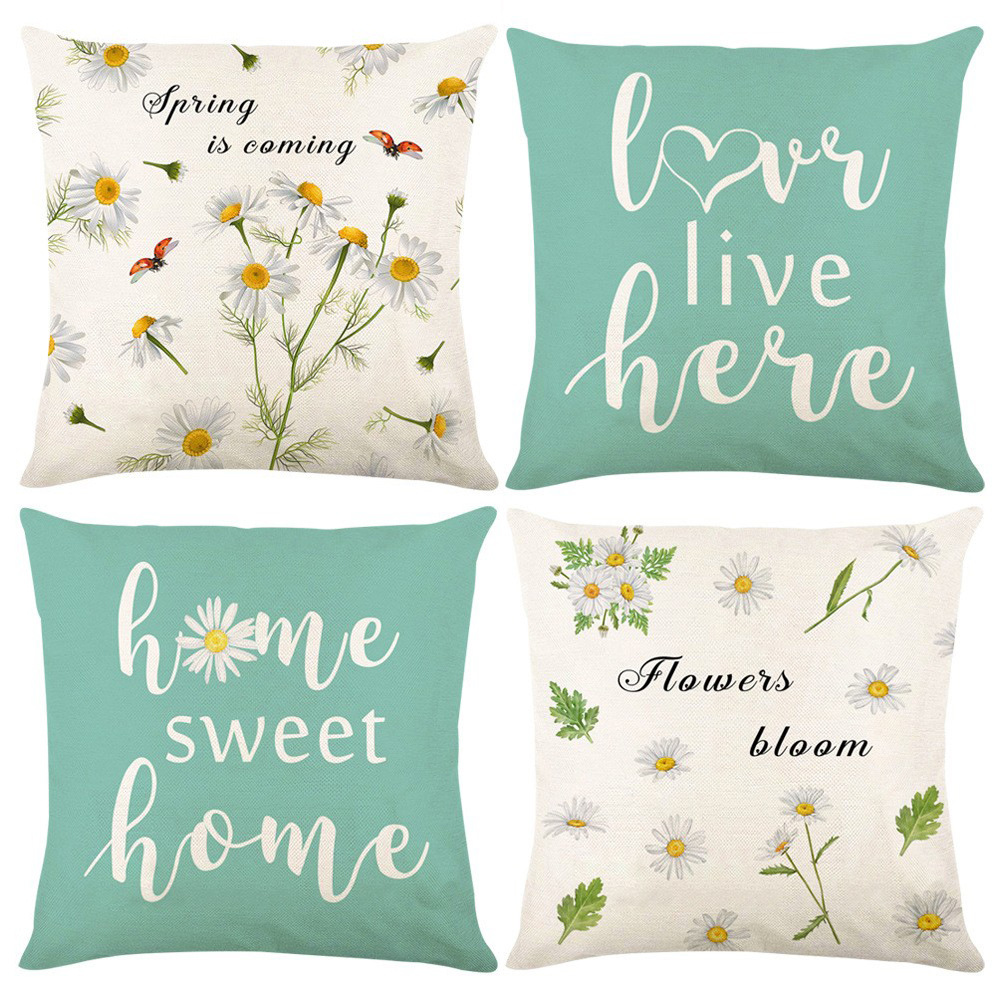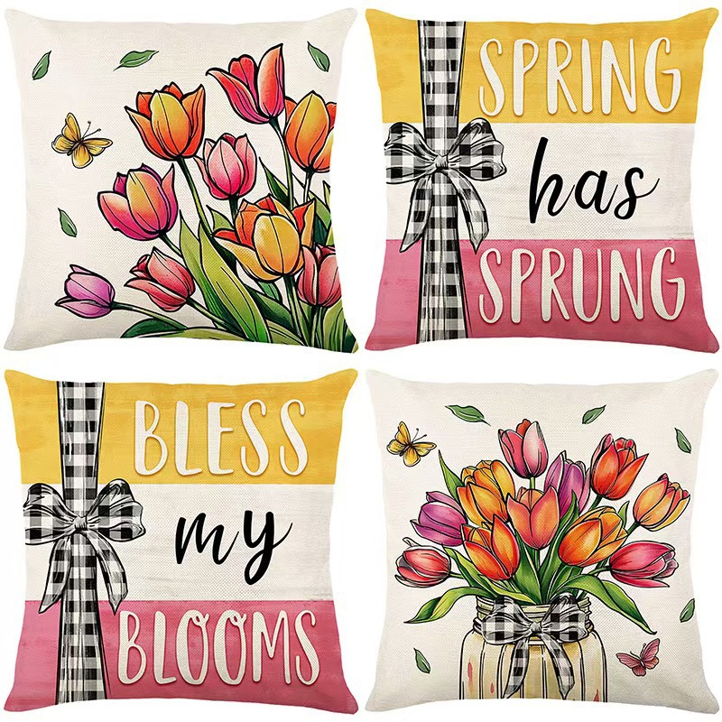 Amazon 新しい春チューリッププリント枕カバーレター花装飾ソファクッションカバーホームクッション