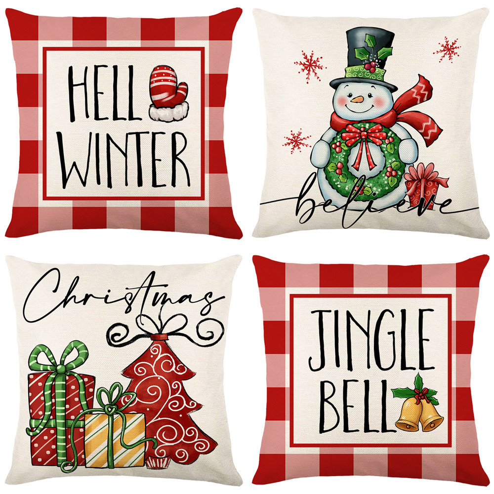 クロスボーダークリスマスギフト枕カバーリネンデジタル印刷クリスマス雪だるま枕カバーソファ装飾背もたれ枕カバー