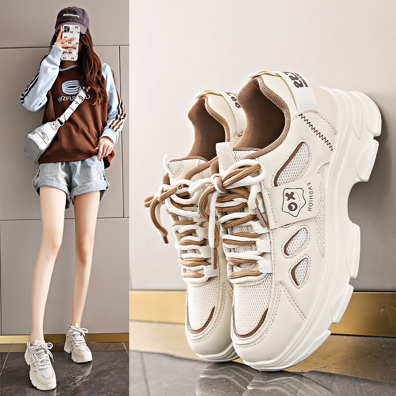 2025 新スポーツお父さん靴女性の夏通気性向上女性の靴厚底カジュアルランニング白靴春と秋のスタイル