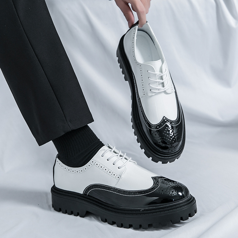 外国貿易の大きい靴の男の2023新型の英倫のビジネスのレジャーのひもの厚い底は色の潮流の工装の靴を合わせて直接販売します。