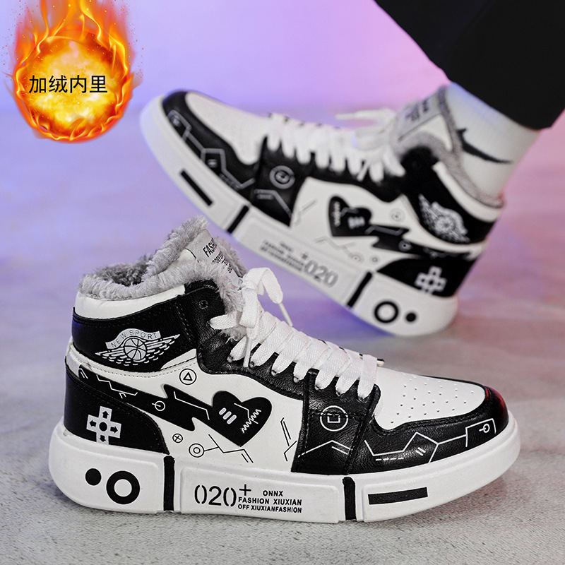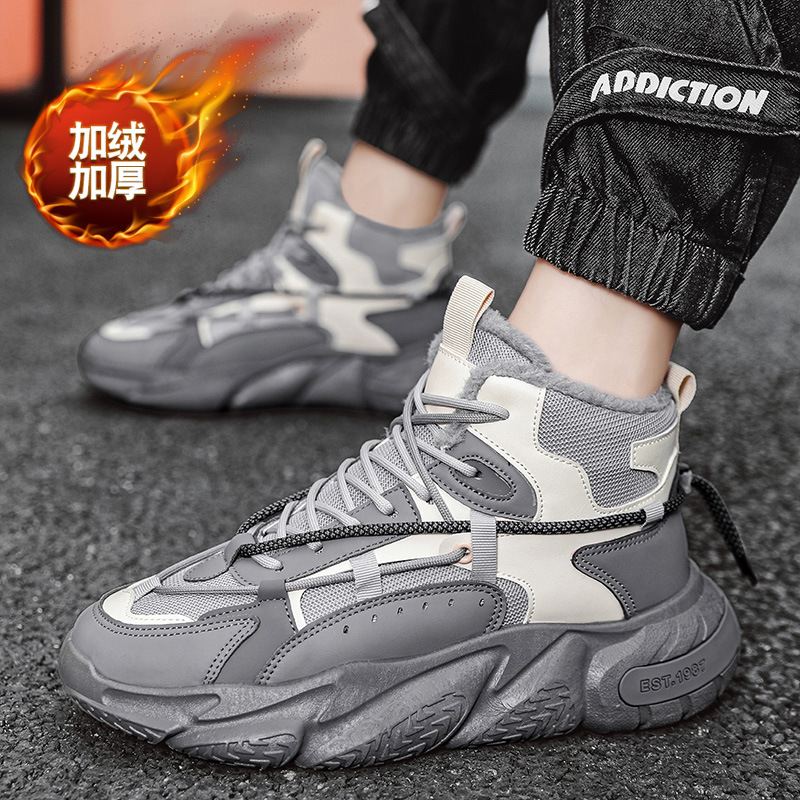 高組男靴2023冬の新型ベルベットは雪地綿靴学生運動革面レジャー靴男代を厚くした