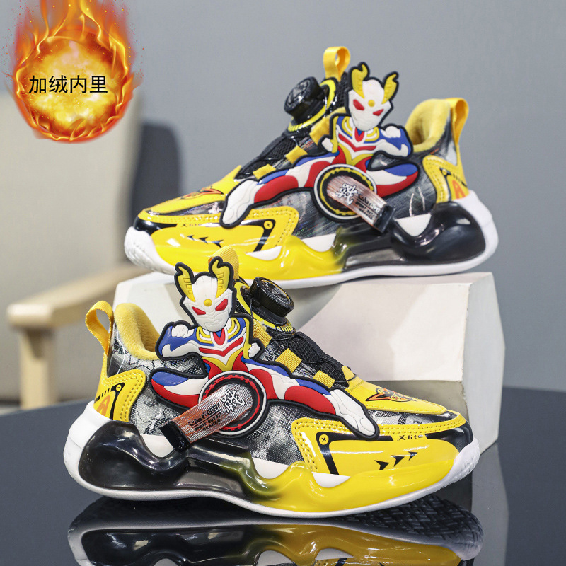 男の子の靴の冬の新型2023ウルトラマンの運動靴の回転ボタンとベルベットの厚いランニングの子供の綿の靴