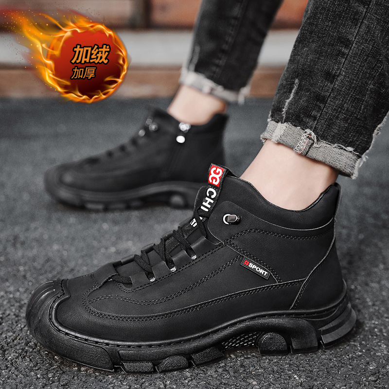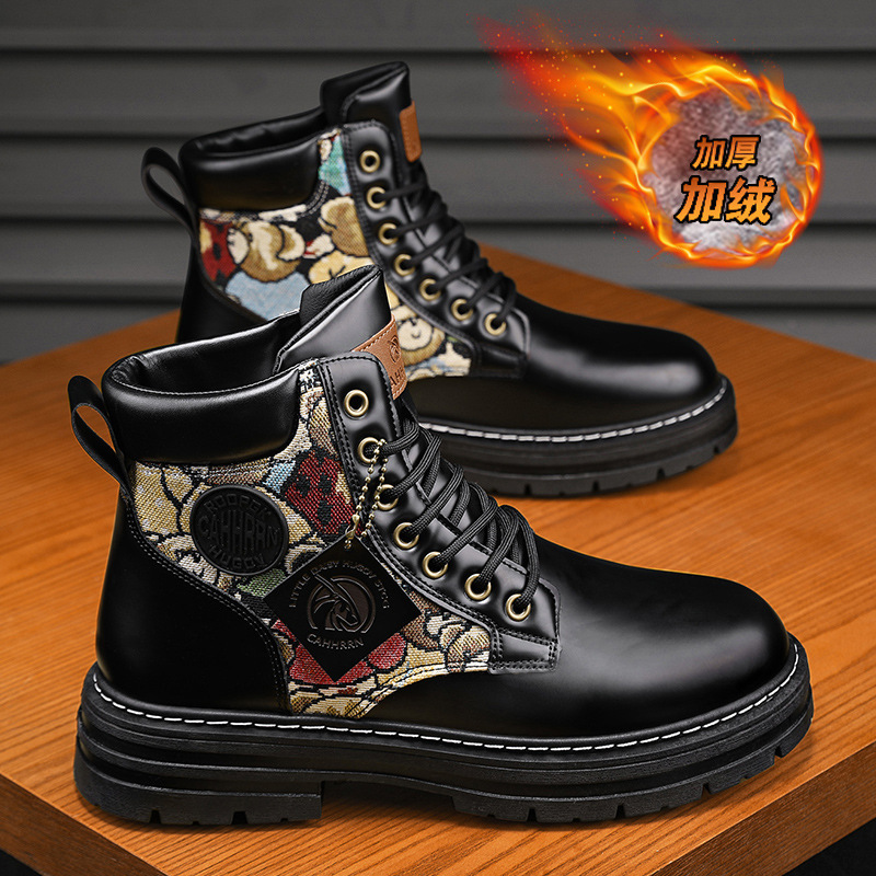 男性靴秋冬新作カジュアルシューズファッションアウトドアベルベット馬丁靴個性保温雪地ブーツ