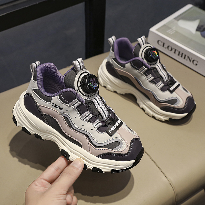 子供の運動靴の男の子の子供靴の2023秋冬の新型の中で大きい子供の女の子のベルベットの回転のボタンのお父さんの靴の潮流