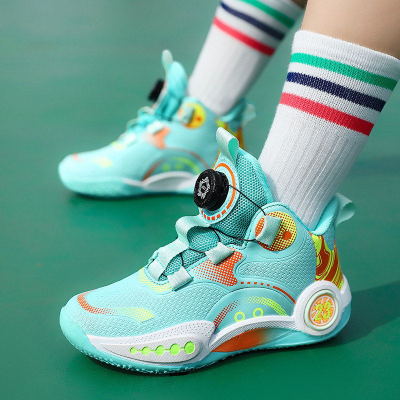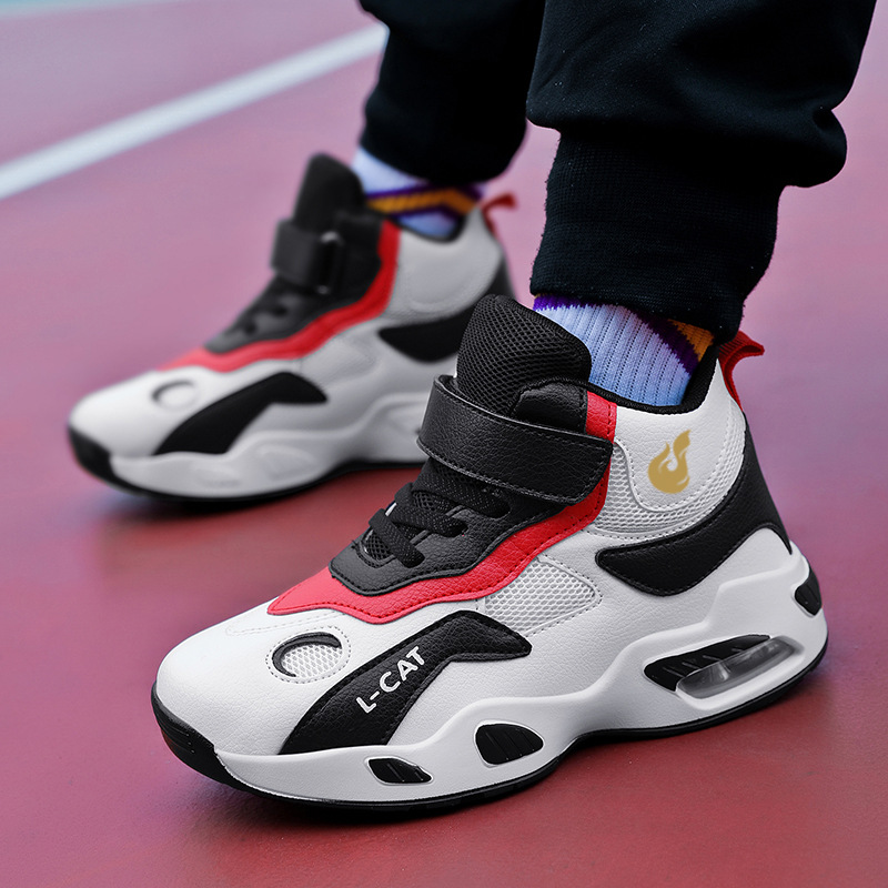 子供のバスケットボールの靴の皮の面の新型の男の子の学生は回転して運動靴の男の子を掛けます。