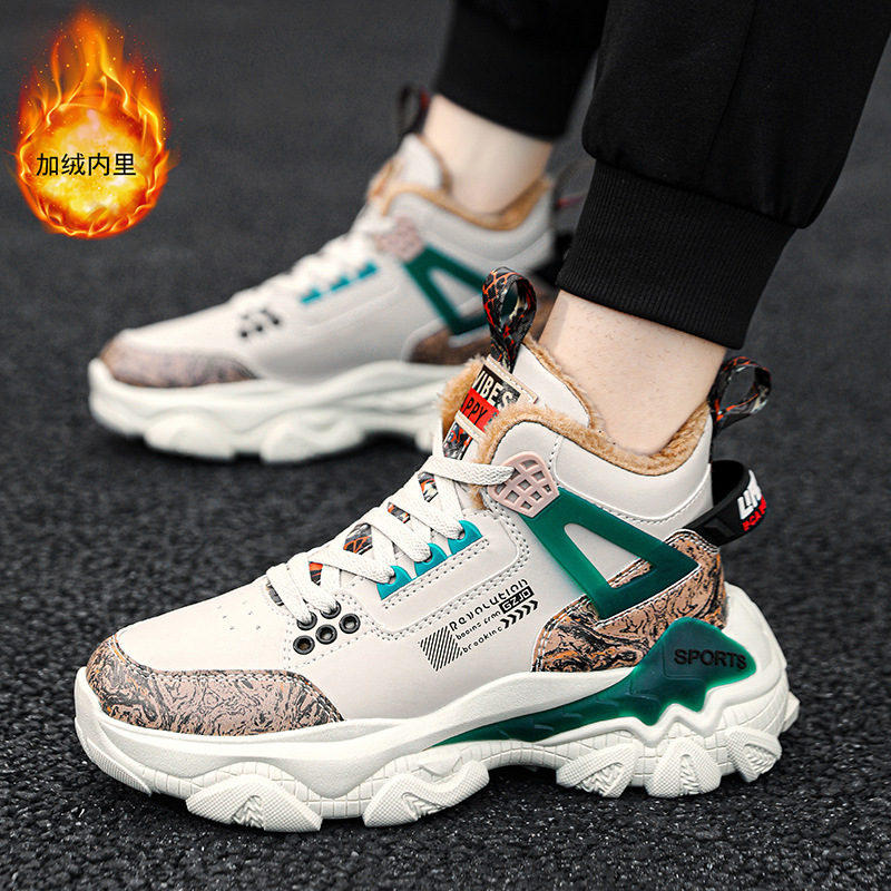高組男靴冬にベルベットをつけて保温綿靴を厚くする中学校の学生が走る運動レジャーの厚い底のおじさん靴男