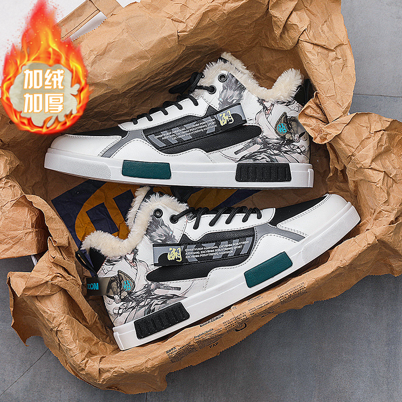 高組男靴2023新型秋冬空軍運動レジャー1号板靴加毛保温綿靴白靴