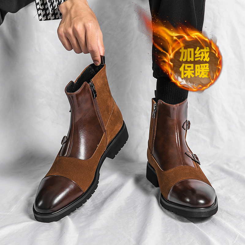 秋冬のベルベットの高さは靴の男性のカジュアルな通気性のマーティンブーツの英倫ブロック内にチェルシーブーツを高くします。