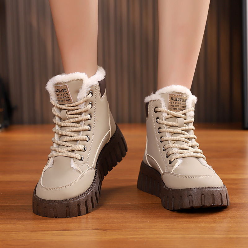 冬の板靴カップルの綿靴の白い靴は低いです。