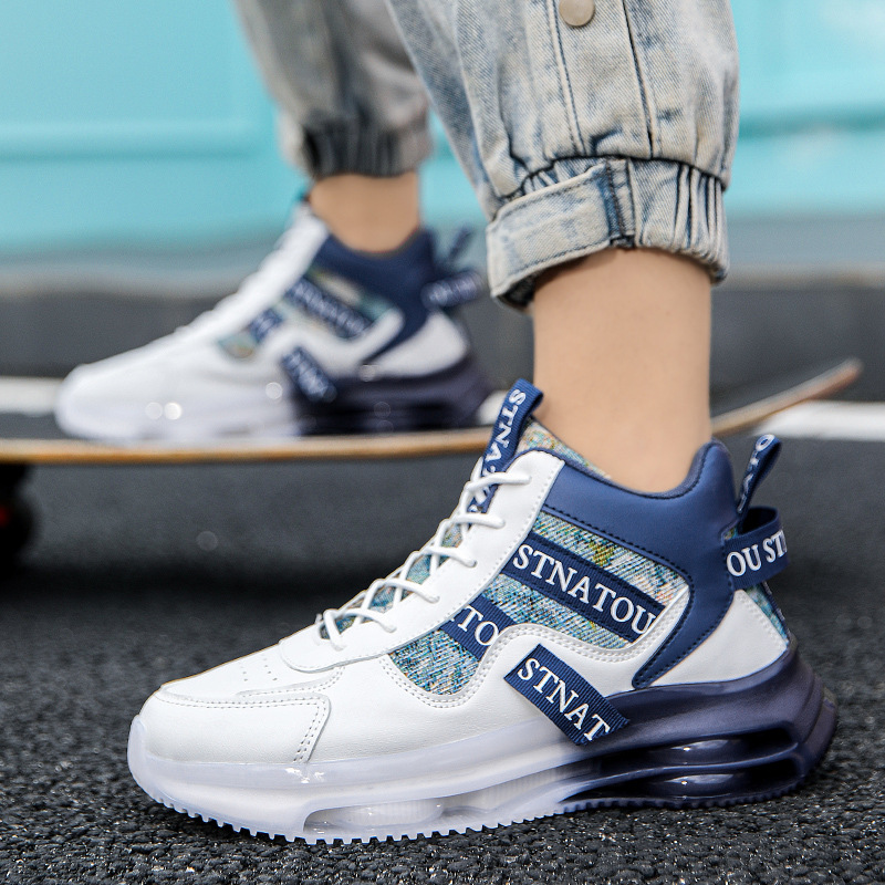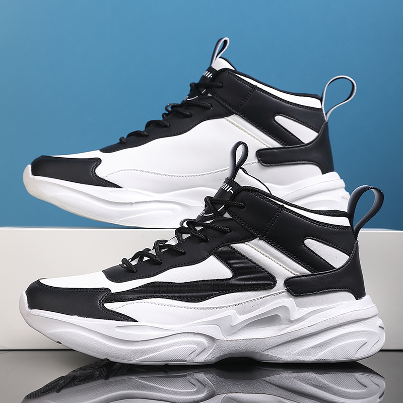 靴の男性の秋の冬の2023の新型の高いバスケットボールの運動靴の学生の白い皮の厚い底のお父さんの潮の靴