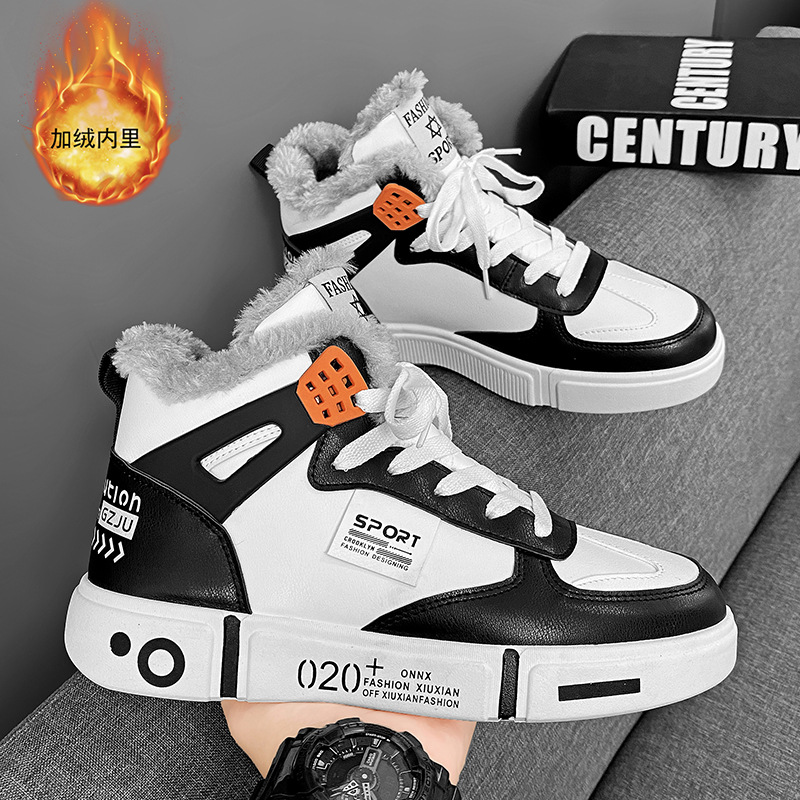 秋冬モデルの新型ベルベット綿靴高組板靴青少年中学校学生スポーツシューズの厚い底のカジュアルな男性靴