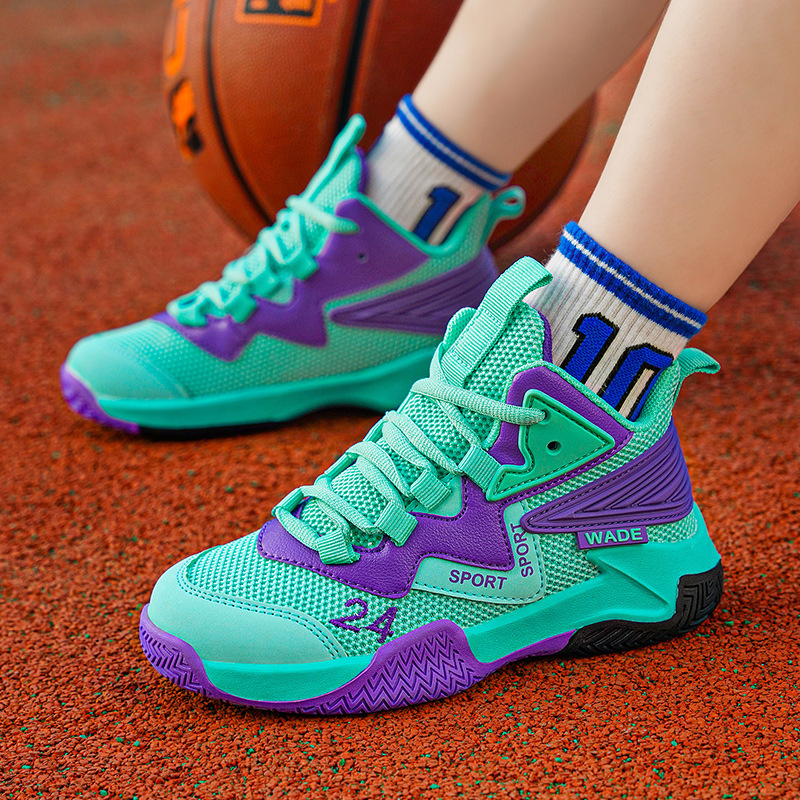 子供のバスケットボールの靴2023新型ネットの通気性の青少年の専門の実戦の訓練の靴の中で大きい子供の男の子の靴