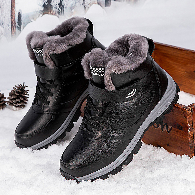 メーカー直販屋外カップルの雪地靴保温ベルベット男性綿靴柔らかい快適なマジックボタン老年靴