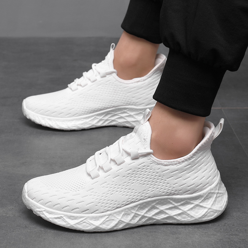 クロスボーダー2023新型ランニングシューズ男性用ソフト底飛織ネット運動靴男女ポップコーン底軽男靴